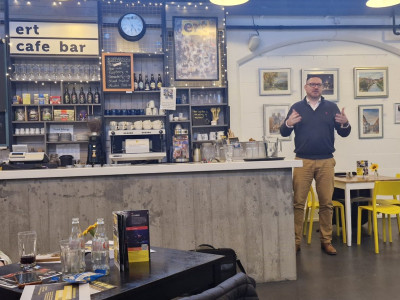 Chair Shaun Dart welcomed attendees and highlighted two significant events: the Chamber’s 75th anniversary celebrations at the Ferguson Fawsitt and the 80th celebrations of VE Day to VJ Day in Beverley; then introduced two guest speakers: Richard Avery, the director of The One Good Thing (shortly to have its World Premiere at ert) and James Cunningham from Navigation Wealth.