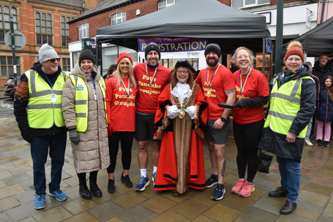 On Sunday, February 15th, the historic streets of Toll Gavel transformed into a racing track for Beverley’s traditional Pancake Race. This annual event, held on the Sunday before Shrove Tuesday, celebrates a quirky British tradition dating back to the legend of a woman rushing to church with her frying pan in hand.