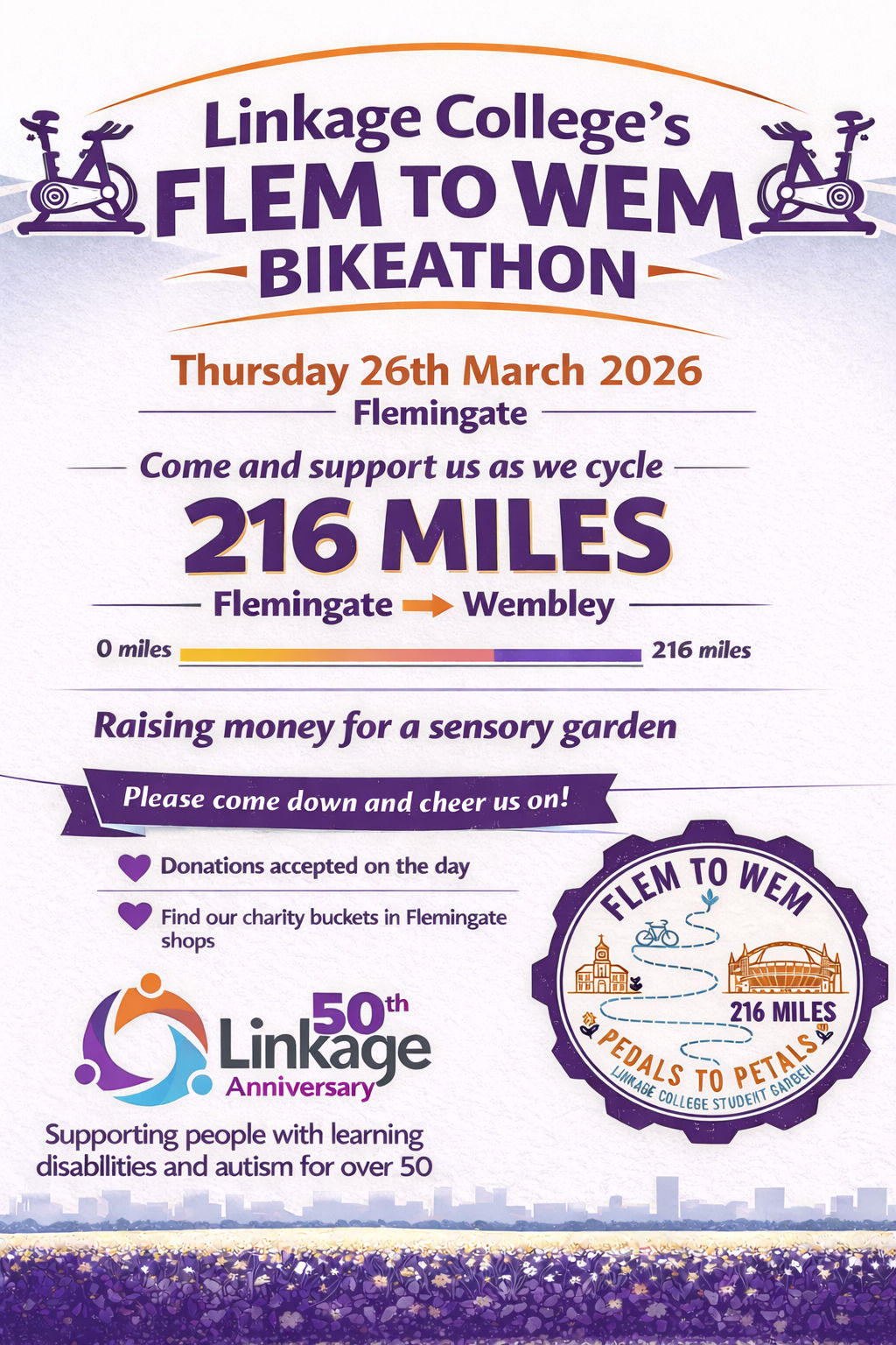 Beverley & District Chamber of Trade is proud to highlight an exciting fundraising event organised by one of our valued members, Linkage College. As part of their 50th anniversary celebrations, Linkage College is hosting the Flem to Wem Bikeathon, a unique and challenging fundraising initiative aimed at raising money to develop a sensory garden for their campus and the wider community.